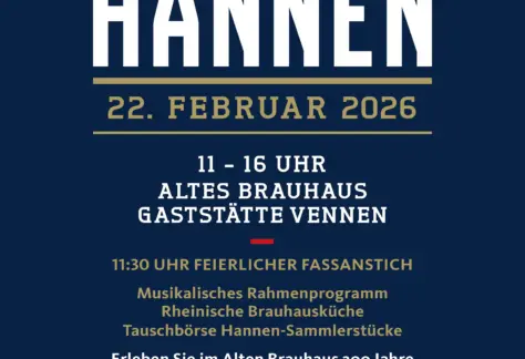 Am 22. Februar 2026 wird im Alten Brauhaus – Gaststätte Vennen gefeiert, was man nicht alle Tage erlebt: 300 Jahre Hannen. Von 11 bis 16 Uhr dreht...