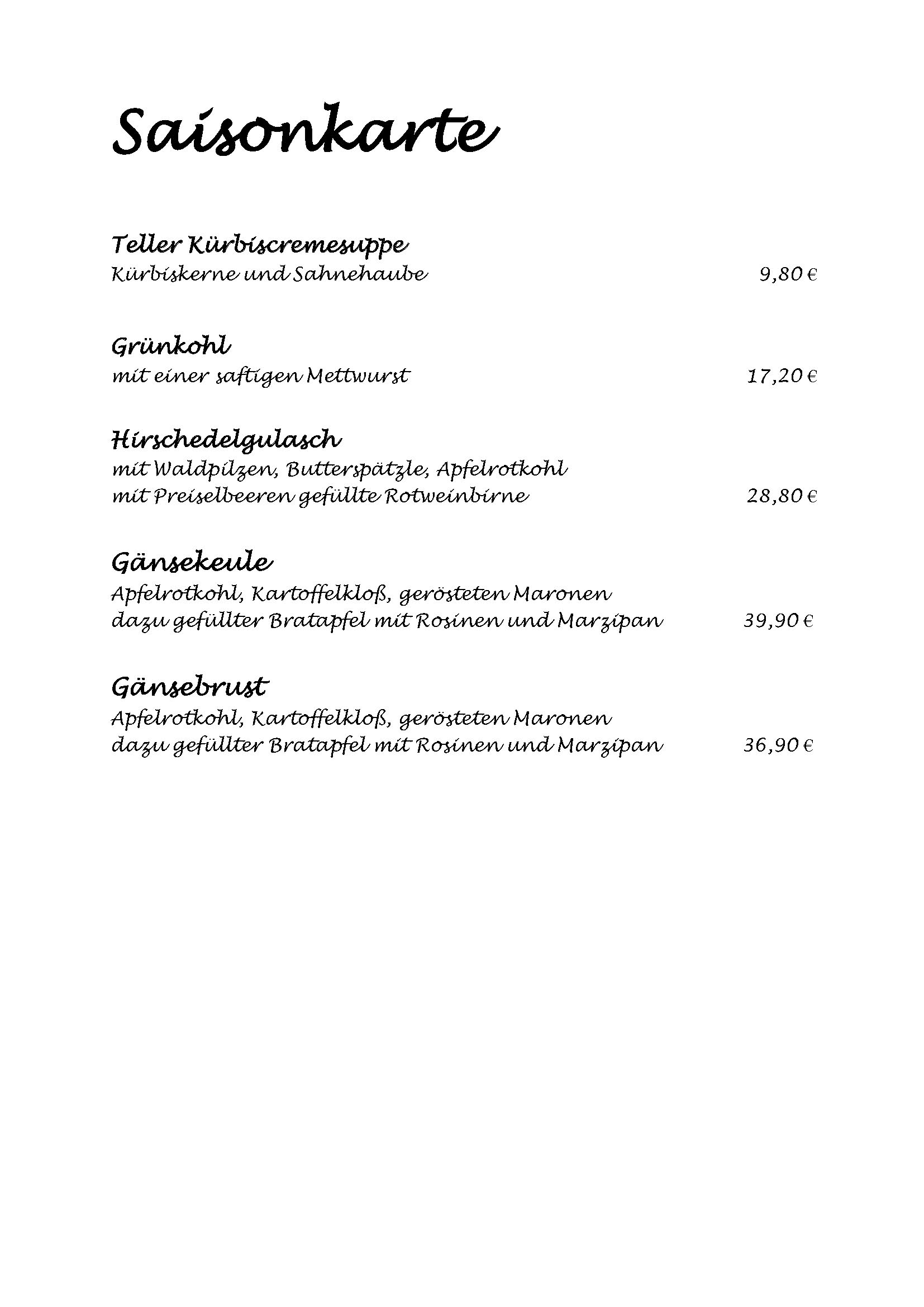 Unsere Novemberkarte steht ganz im Zeichen von Wild, Gans und traditionellen Klassikern, die Körper und Seele wärmen.